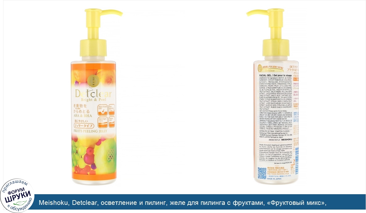 Друзья, если у вас есть отзыв/дополнение/комментарий/вопрос относительно Meishoku, Detclear, осветление и пилинг, желе для пилинга с фруктами, «Фруктовый микс», 180мл (6,1унции) - напишите его ответом в эту тему (это будет полезно всему сообществу в целом и вам в отдельности).