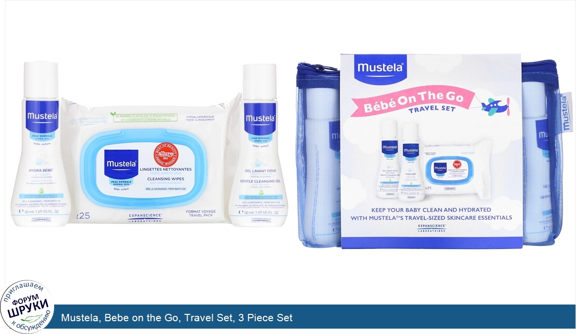 Mustela, Bebe on the Go, Travel Set, 3 Piece Set