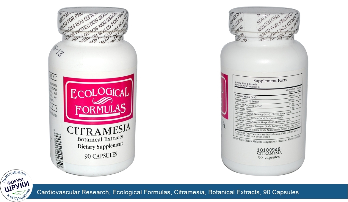 Cardiovascular Research, Ecological Formulas, Citramesia, Botanical Extracts, 90 Capsules