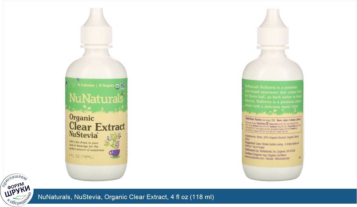 Друзья, если у вас есть отзыв/дополнение/комментарий/вопрос относительно NuNaturals, NuStevia, Organic Clear Extract, 4 fl oz (118 ml) - напишите его ответом в эту тему (это будет полезно всему сообществу в целом и вам в отдельности).