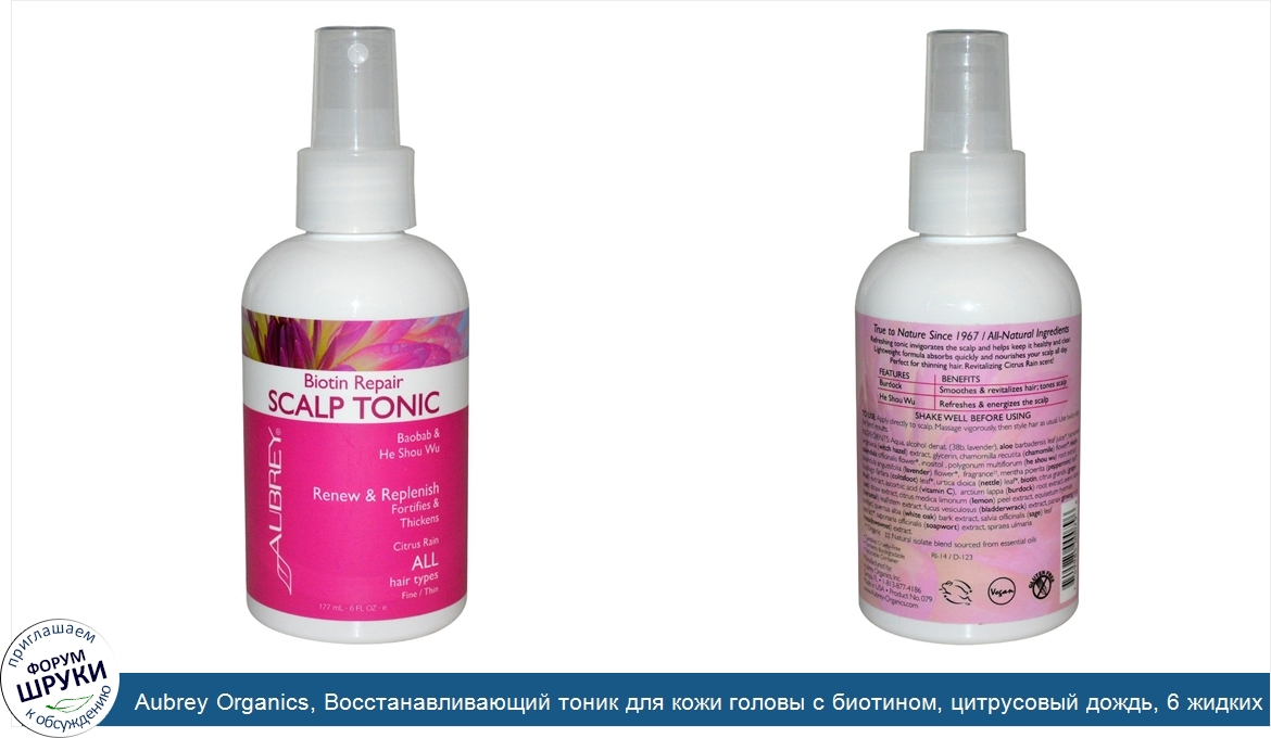 ru Aubrey Organics, Восстанавливающий тоник для кожи головы с биотином, цитрусовый дождь, 6 жидких унций (177 мл)