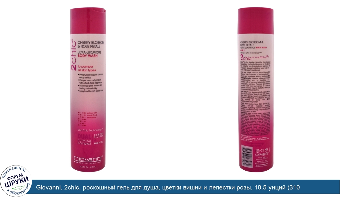 Giovanni, 2chic, роскошный гель для душа, цветки вишни и лепестки розы, 10.5 унций (310 мл)