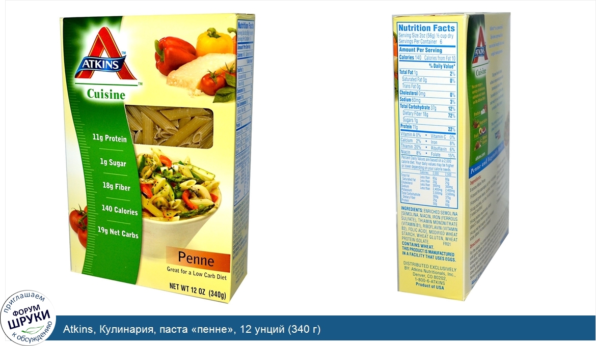 Друзья, если у вас есть отзыв/дополнение/комментарий/вопрос относительно Atkins, Кулинария, паста «пенне», 12 унций (340 г) - напишите его ответом в эту тему (это будет полезно всему сообществу в целом и вам в отдельности).
