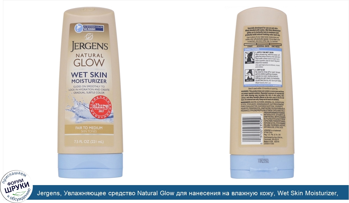 ru Jergens, Увлажняющее средство Natural Glow для нанесения на влажную кожу, Wet Skin Moisturizer, оттенок Fair to Medium (221мл)