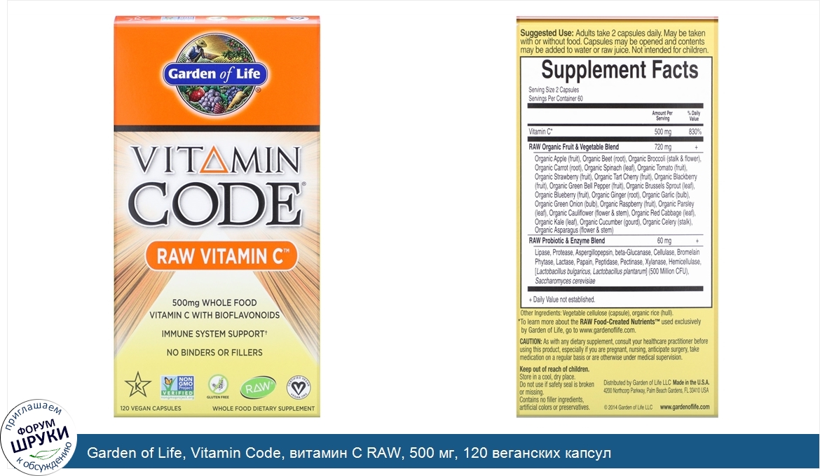 Друзья, если у вас есть отзыв/дополнение/комментарий/вопрос относительно Garden of Life, Vitamin Code, витамин C RAW, 500 мг, 120 веганских капсул - напишите его ответом в эту тему (это будет полезно всему сообществу в целом и вам в отдельности).