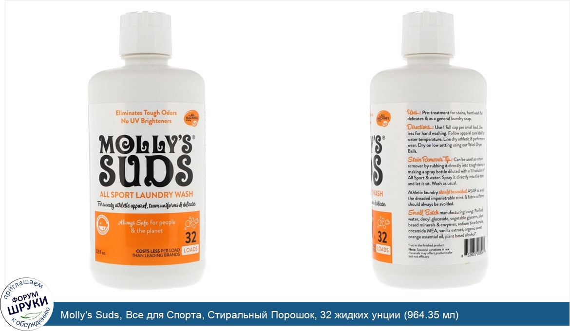 Друзья, если у вас есть отзыв/дополнение/комментарий/вопрос относительно Molly's Suds, Все для Спорта, Стиральный Порошок, 32 жидких унции (964.35 мл) - напишите его ответом в эту тему (это будет полезно всему сообществу в целом и вам в отдельности).