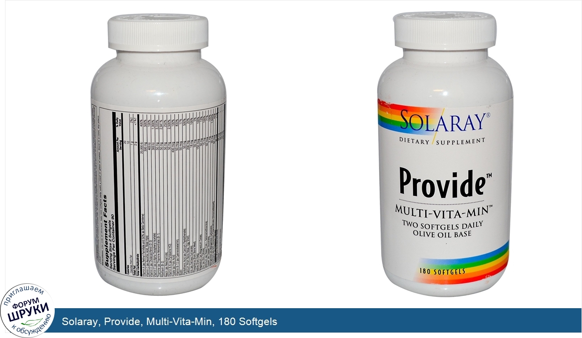 Друзья, если у вас есть отзыв/дополнение/комментарий/вопрос относительно Solaray, Provide, Multi-Vita-Min, 180 Softgels - напишите его ответом в эту тему (это будет полезно всему сообществу в целом и вам в отдельности).
