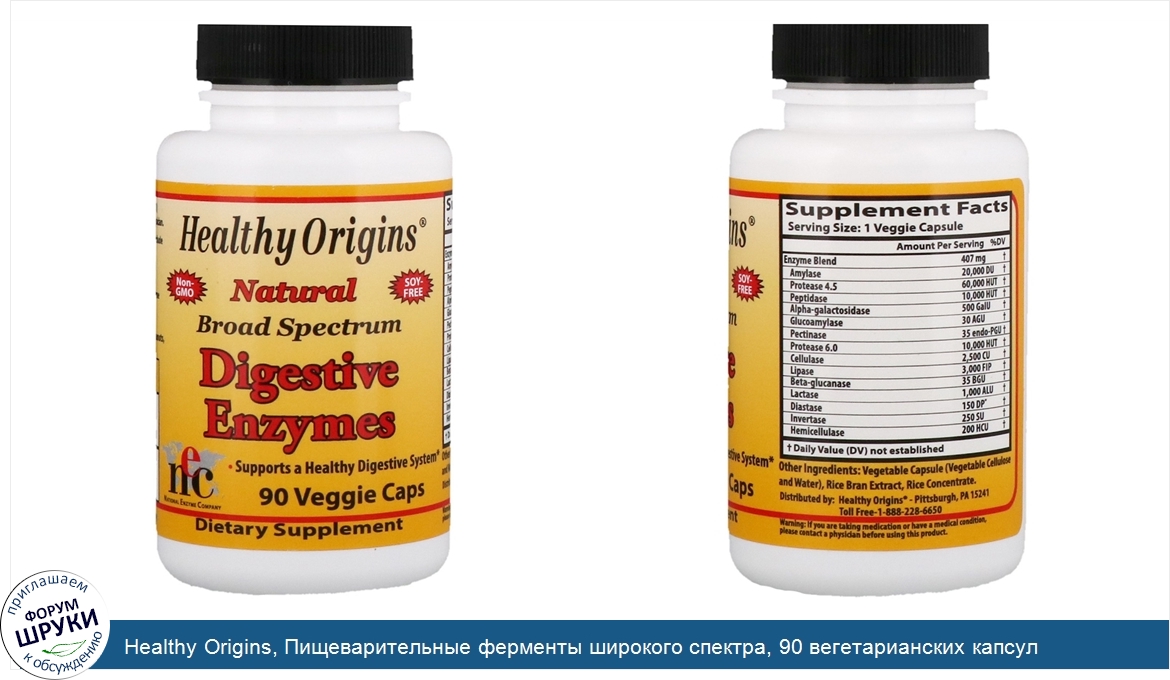 Healthy Origins, Пищеварительные ферменты широкого спектра, 90 вегетарианских капсул