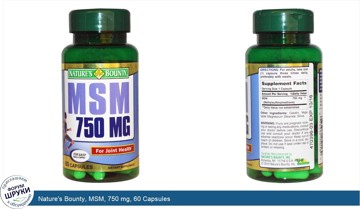 Nature's Bounty, MSM, 750 mg, 60 Capsules