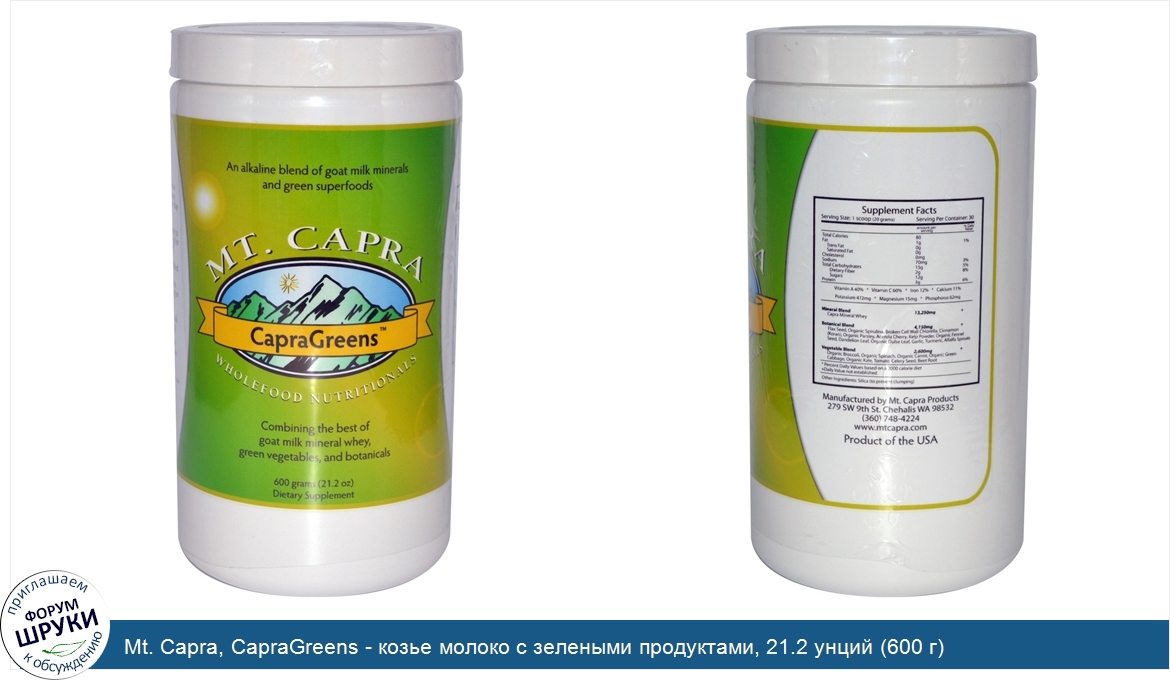 Mt. Capra, CapraGreens - козье молоко с зелеными продуктами, 21.2 унций (600 г)