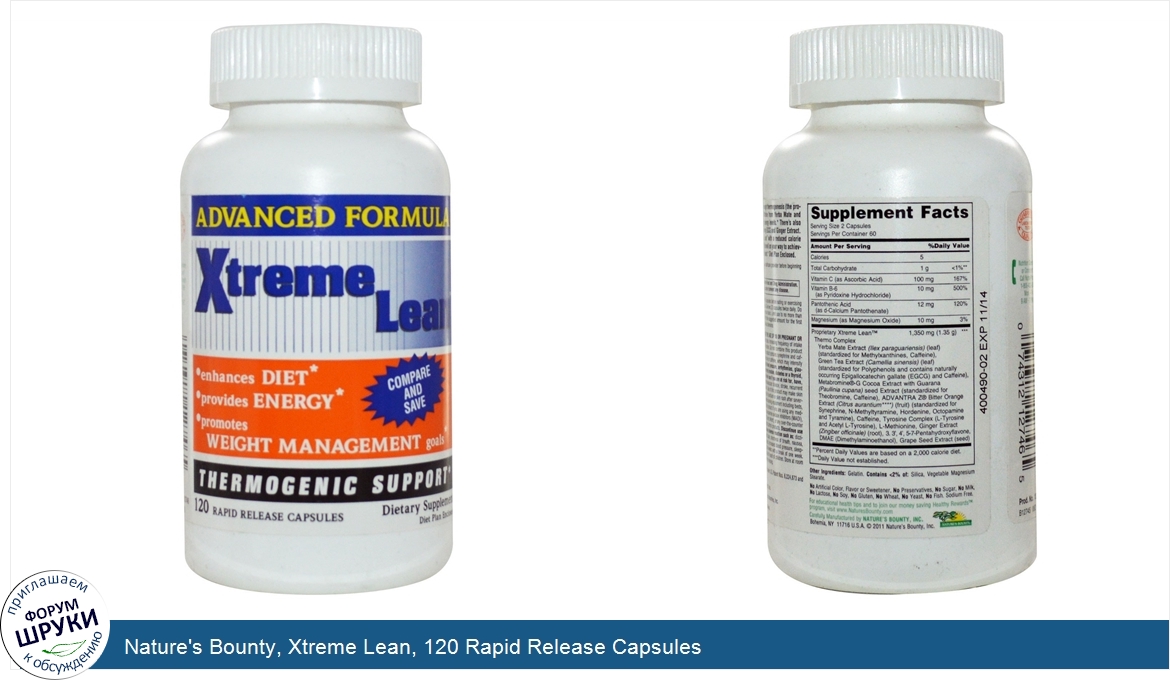 Друзья, если у вас есть отзыв/дополнение/комментарий/вопрос относительно Nature's Bounty, Xtreme Lean, 120 Rapid Release Capsules - напишите его ответом в эту тему (это будет полезно всему сообществу в целом и вам в отдельности).