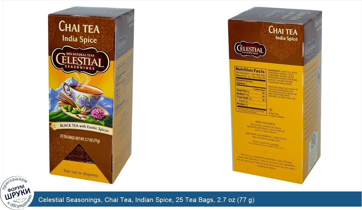 Друзья, если у вас есть отзыв/дополнение/комментарий/вопрос относительно Celestial Seasonings, Chai Tea, Indian Spice, 25 Tea Bags, 2.7 oz (77 g) - напишите его ответом в эту тему (это будет полезно всему сообществу в целом и вам в отдельности).