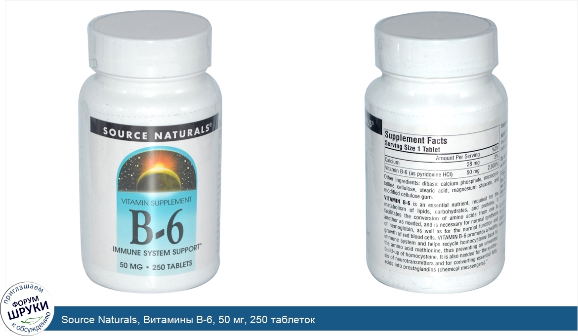 Друзья, если у вас есть отзыв/дополнение/комментарий/вопрос относительно Source Naturals, Витамины B-6, 50 мг, 250 таблеток - напишите его ответом в эту тему (это будет полезно всему сообществу в целом и вам в отдельности).