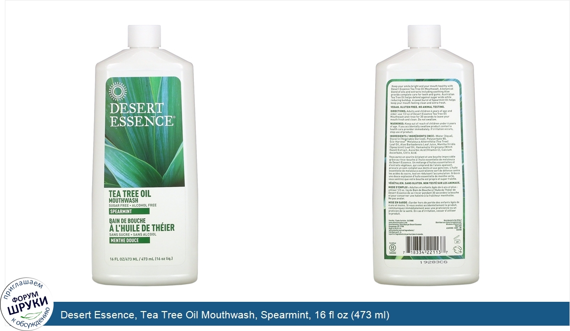 Друзья, если у вас есть отзыв/дополнение/комментарий/вопрос относительно Desert Essence, Tea Tree Oil Mouthwash, Spearmint, 16 fl oz (473 ml) - напишите его ответом в эту тему (это будет полезно всему сообществу в целом и вам в отдельности).