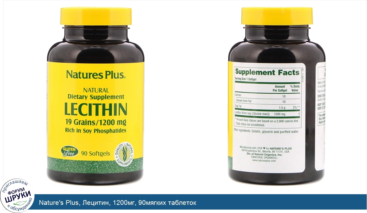 Друзья, если у вас есть отзыв/дополнение/комментарий/вопрос относительно Nature's Plus, Лецитин, 1200мг, 90мягких таблеток - напишите его ответом в эту тему (это будет полезно всему сообществу в целом и вам в отдельности).