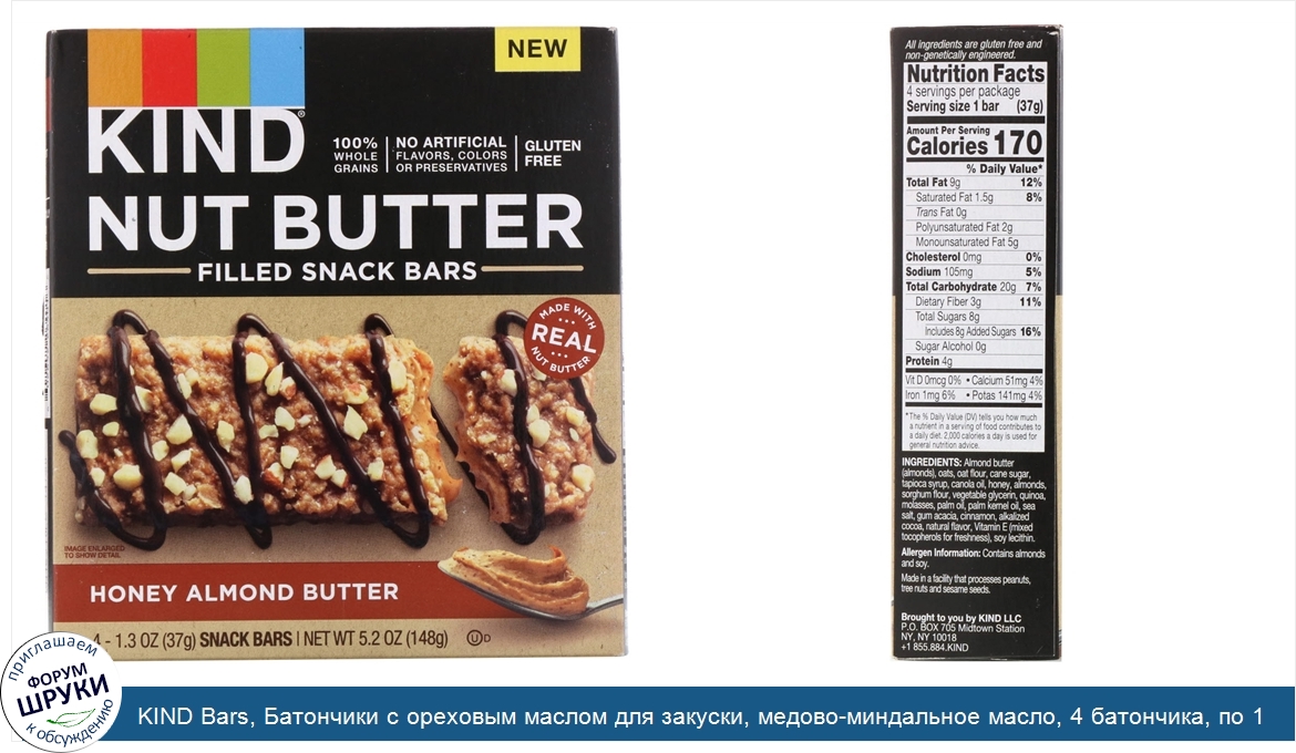 Друзья, если у вас есть отзыв/дополнение/комментарий/вопрос относительно KIND Bars, Батончики с ореховым маслом для закуски, медово-миндальное масло, 4 батончика, по 1,3 унции (37 г) каждый - напишите его ответом в эту тему (это будет полезно всему сообществу в целом и вам в отдельности).
