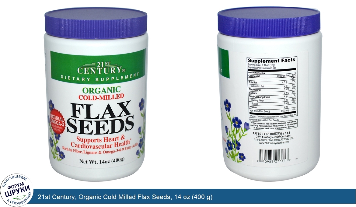 Друзья, если у вас есть отзыв/дополнение/комментарий/вопрос относительно 21st Century, Organic Cold Milled Flax Seeds, 14 oz (400 g) - напишите его ответом в эту тему (это будет полезно всему сообществу в целом и вам в отдельности).