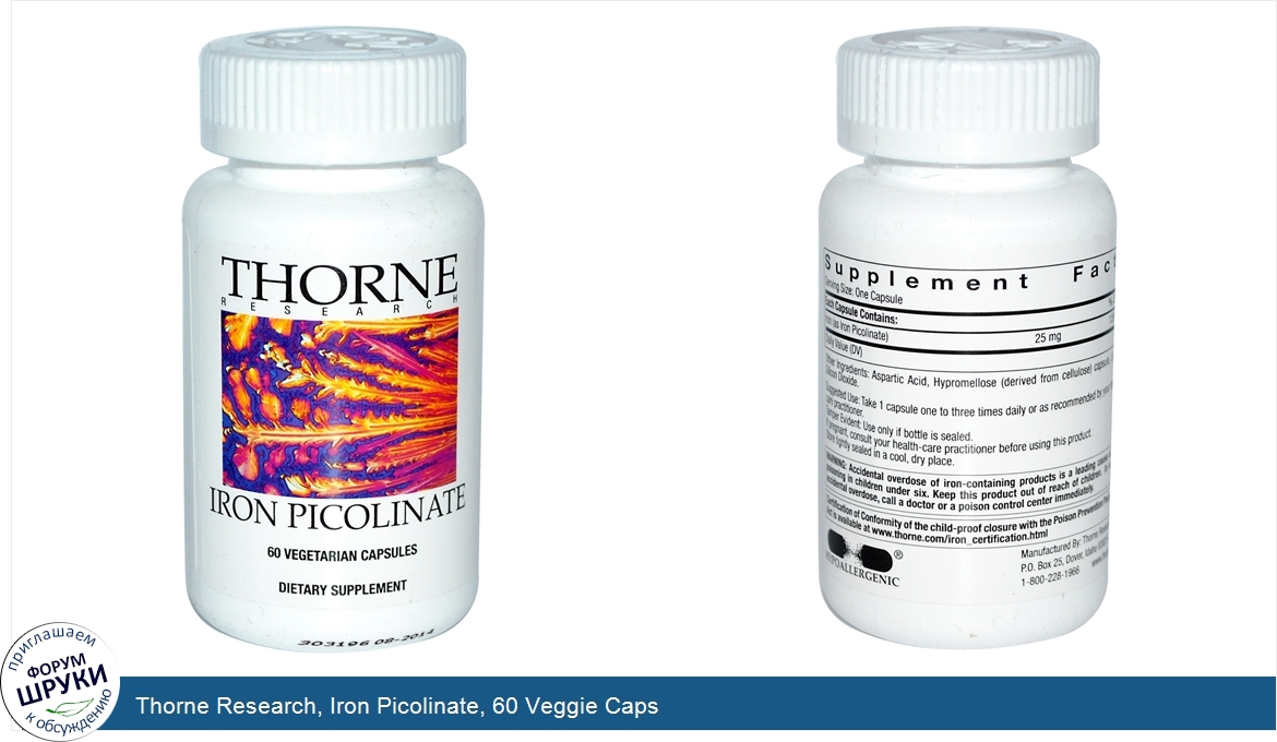 Thorne Research, Iron Picolinate, 60 Veggie Caps