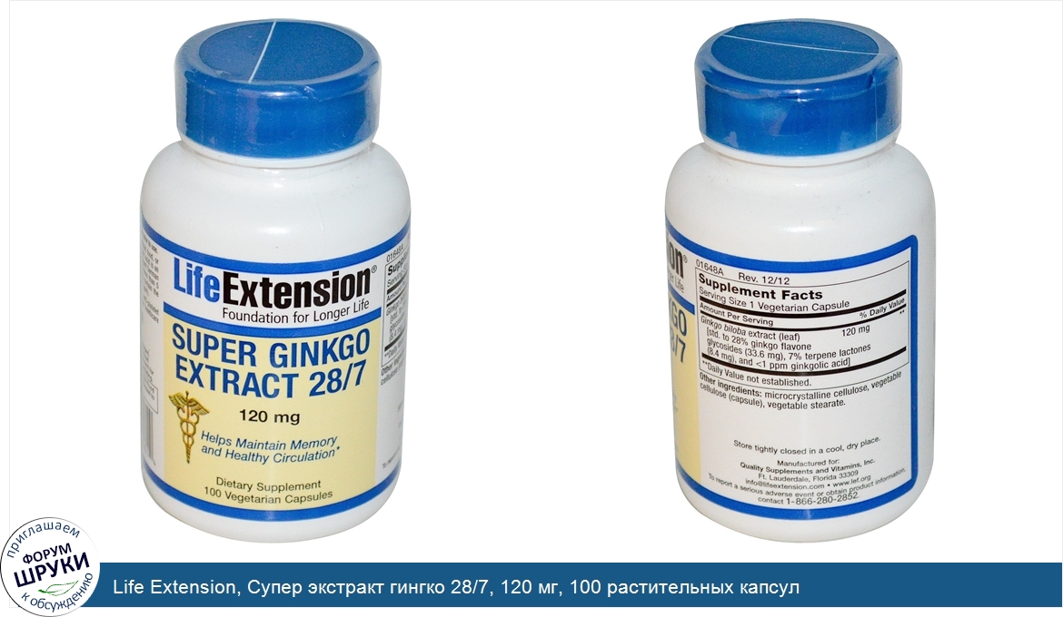 ru Life Extension, Супер экстракт гингко 28/7, 120 мг, 100 растительных капсул