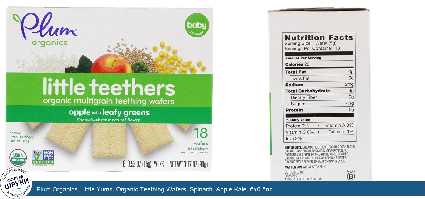 Категории: Plum Organics, Детские товары, Детское питание и питание для младенцев, Вафли для прорезывания зубов, Плам Органикс, 58079