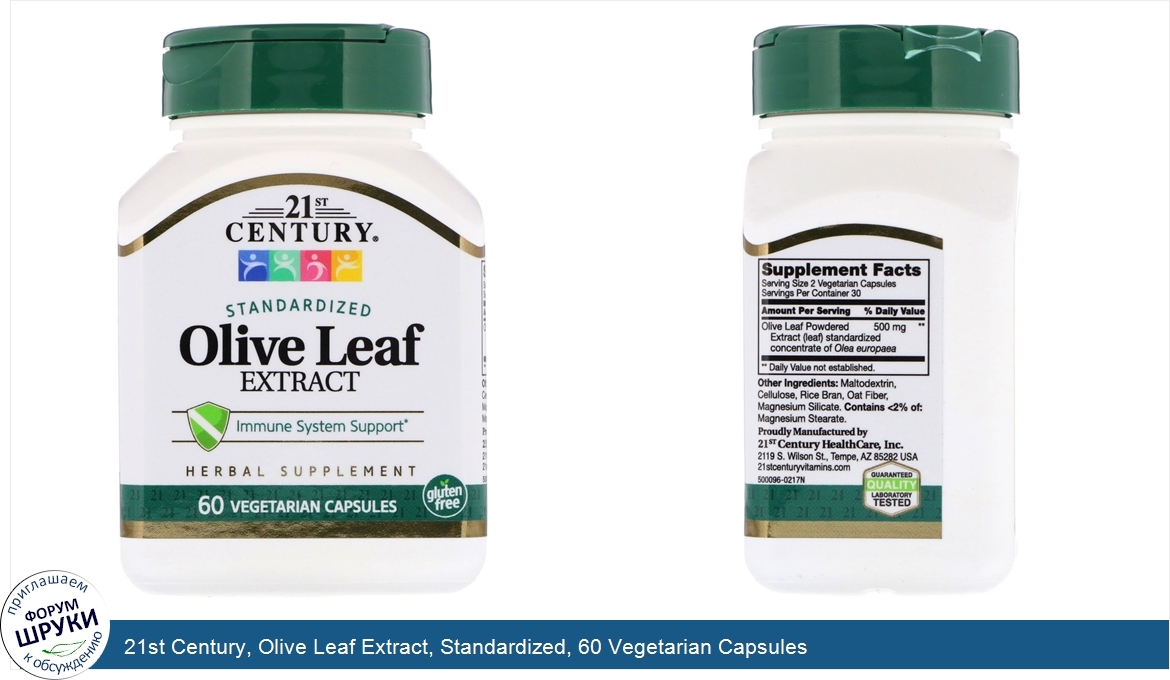 Друзья, если у вас есть отзыв/дополнение/комментарий/вопрос относительно 21st Century, Olive Leaf Extract, Standardized, 60 Vegetarian Capsules - напишите его ответом в эту тему (это будет полезно всему сообществу в целом и вам в отдельности).