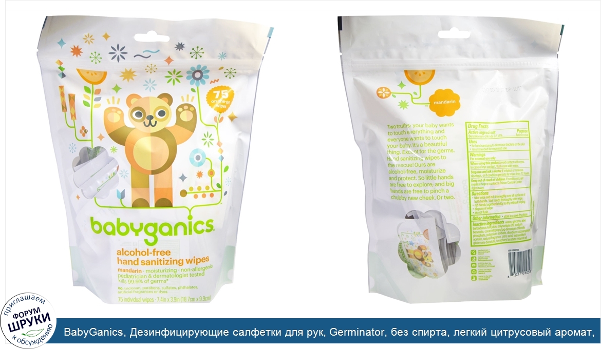 Друзья, если у вас есть отзыв/дополнение/комментарий/вопрос относительно BabyGanics, Дезинфицирующие салфетки для рук, Germinator, без спирта, легкий цитрусовый аромат, 75 салфеток - напишите его ответом в эту тему (это будет полезно всему сообществу в целом и вам в отдельности).