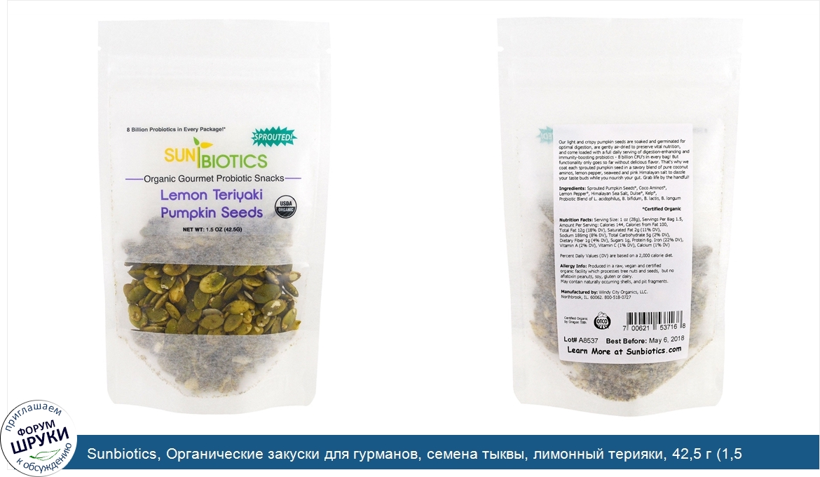 Друзья, если у вас есть отзыв/дополнение/комментарий/вопрос относительно Sunbiotics, Органические закуски для гурманов, семена тыквы, лимонный терияки, 42,5 г (1,5 унции) - напишите его ответом в эту тему (это будет полезно всему сообществу в целом и вам в отдельности).