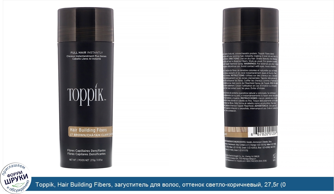 Друзья, если у вас есть отзыв/дополнение/комментарий/вопрос относительно Toppik, Hair Building Fibers, загуститель для волос, оттенок светло-коричневый, 27,5г (0,97 унции) - напишите его ответом в эту тему (это будет полезно всему сообществу в целом и вам в отдельности).