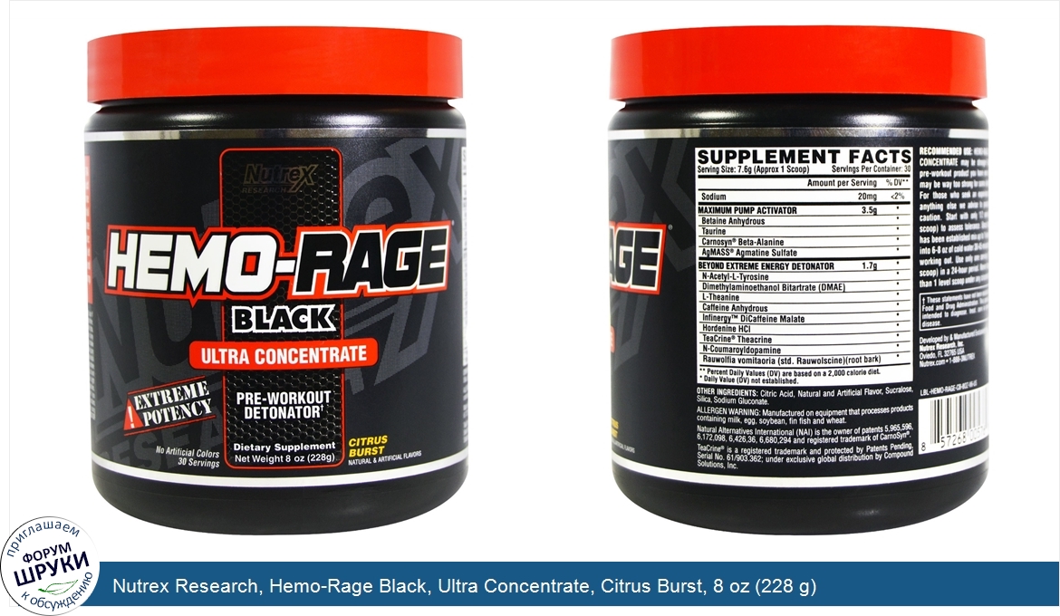 ru Nutrex Research, Hemo-Rage Black, Ultra Concentrate, Citrus Burst, 8 oz (228 g)