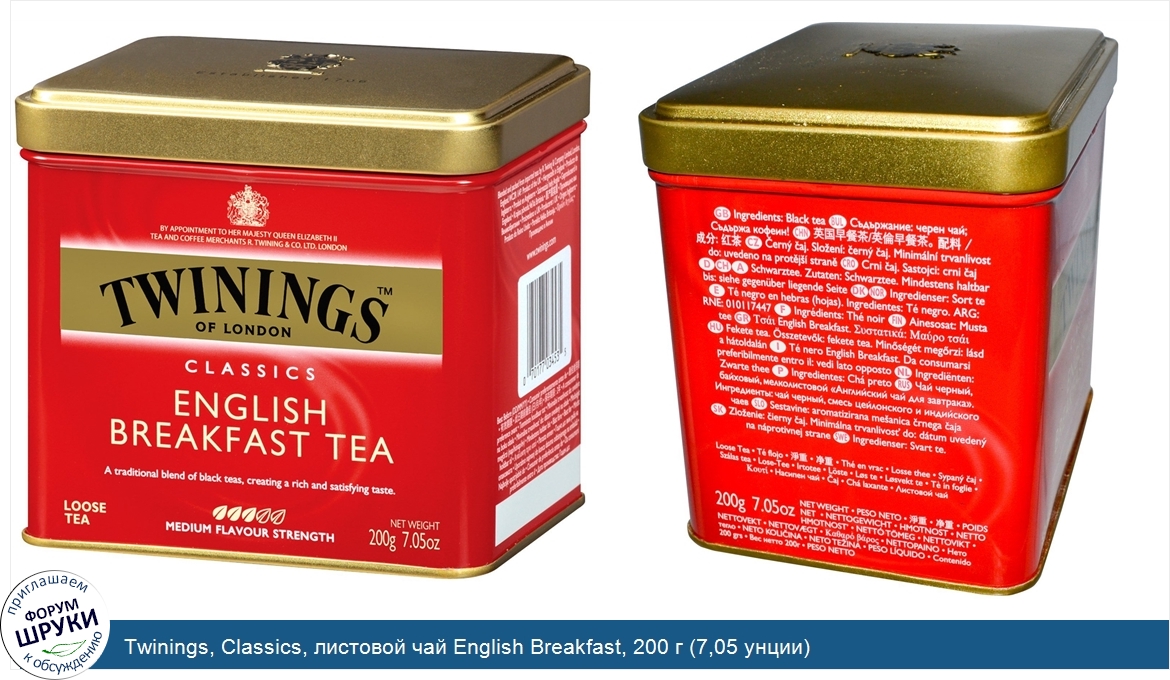 Друзья, если у вас есть отзыв/дополнение/комментарий/вопрос относительно Twinings, Classics, листовой чай English Breakfast, 200 г (7,05 унции) - напишите его ответом в эту тему (это будет полезно всему сообществу в целом и вам в отдельности).