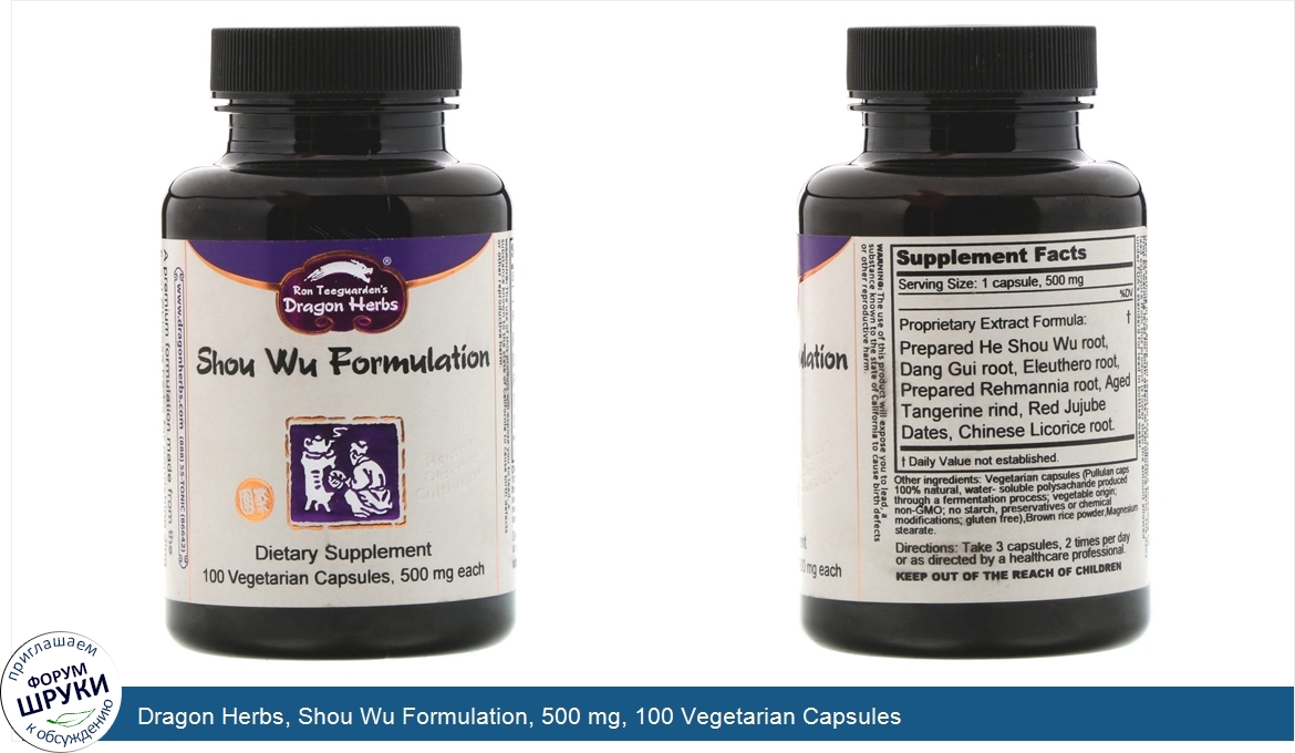 Dragon Herbs, Shou Wu Formulation, 500 mg, 100 Vegetarian Capsules