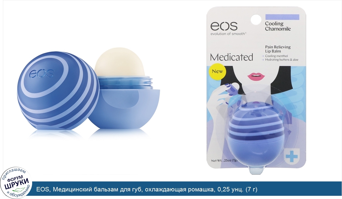 ru EOS, Медицинский бальзам для губ, охлаждающая ромашка, 0,25 унц. (7 г)
