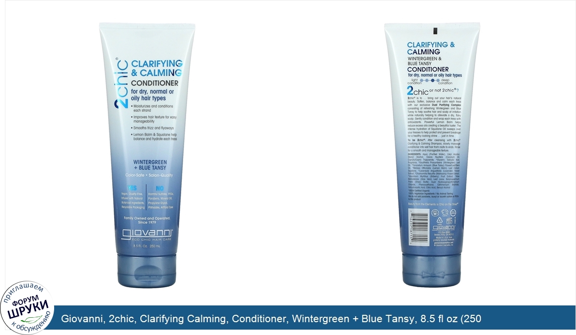 Друзья, если у вас есть отзыв/дополнение/комментарий/вопрос относительно Giovanni, 2chic, Clarifying Calming, Conditioner, Wintergreen + Blue Tansy, 8.5 fl oz (250 ml) - напишите его ответом в эту тему (это будет полезно всему сообществу в целом и вам в отдельности).