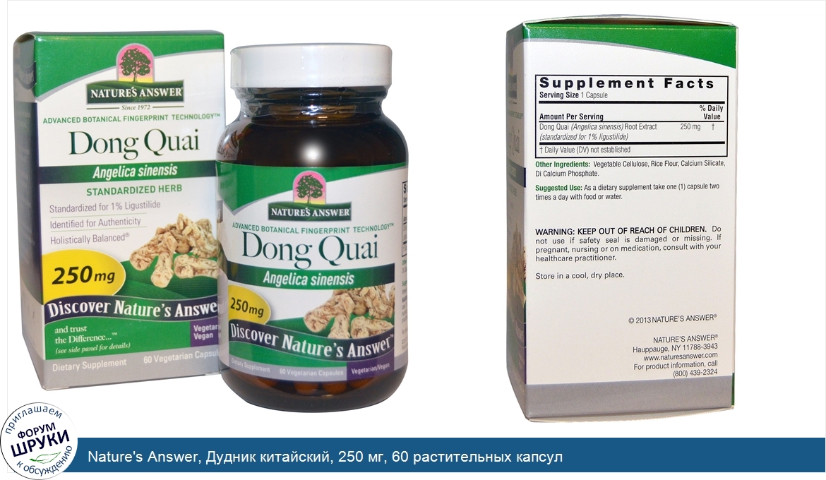 Друзья, если у вас есть отзыв/дополнение/комментарий/вопрос относительно Nature's Answer, Дудник китайский, 250 мг, 60 растительных капсул - напишите его ответом в эту тему (это будет полезно всему сообществу в целом и вам в отдельности).