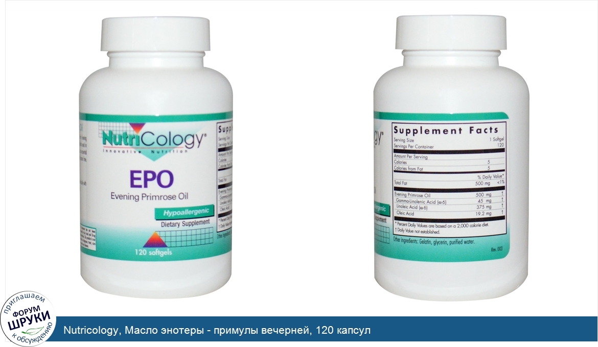 Друзья, если у вас есть отзыв/дополнение/комментарий/вопрос относительно Nutricology, Масло энотеры - примулы вечерней, 120 капсул - напишите его ответом в эту тему (это будет полезно всему сообществу в целом и вам в отдельности).