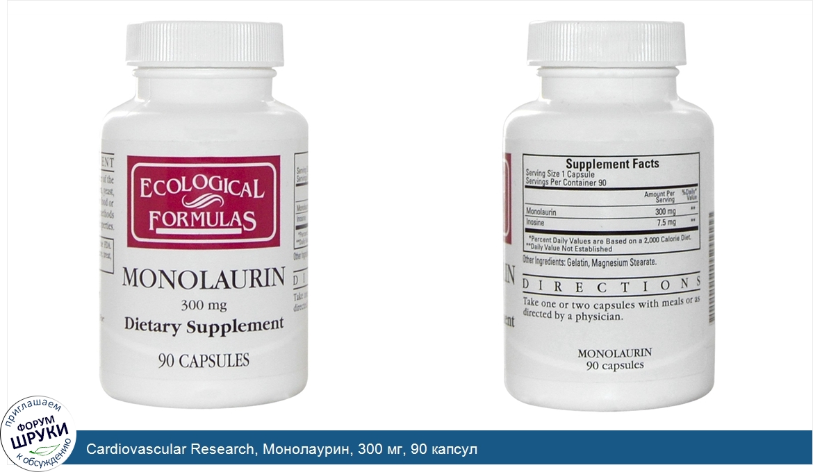 Cardiovascular Research, Монолаурин, 300 мг, 90 капсул