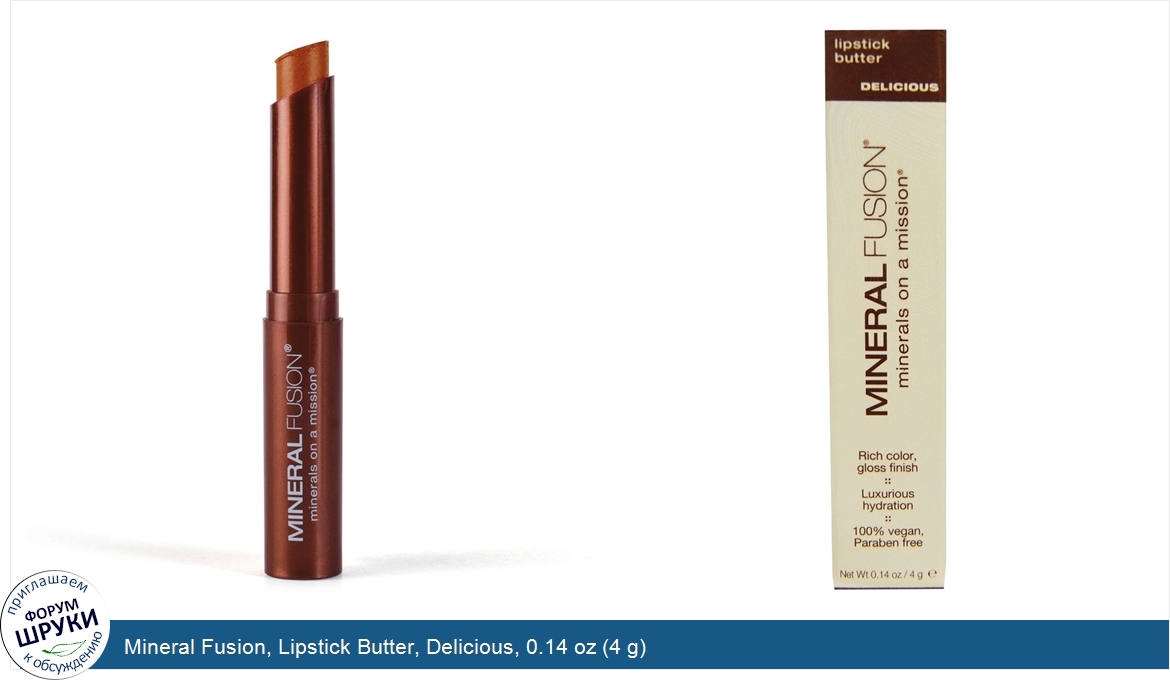 ru Mineral Fusion, Lipstick Butter, Delicious, 0.14 oz (4 g)