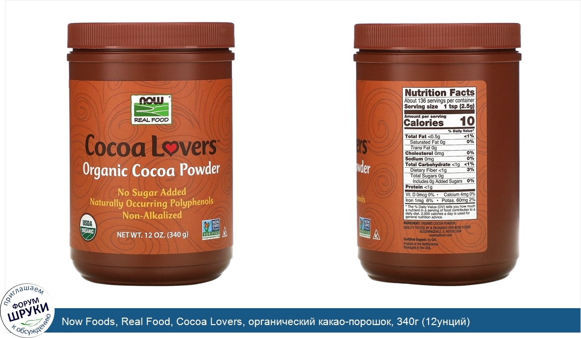 Друзья, если у вас есть отзыв/дополнение/комментарий/вопрос относительно Now Foods, Real Food, Cocoa Lovers, органический какао-порошок, 340г (12унций) - напишите его ответом в эту тему (это будет полезно всему сообществу в целом и вам в отдельности).