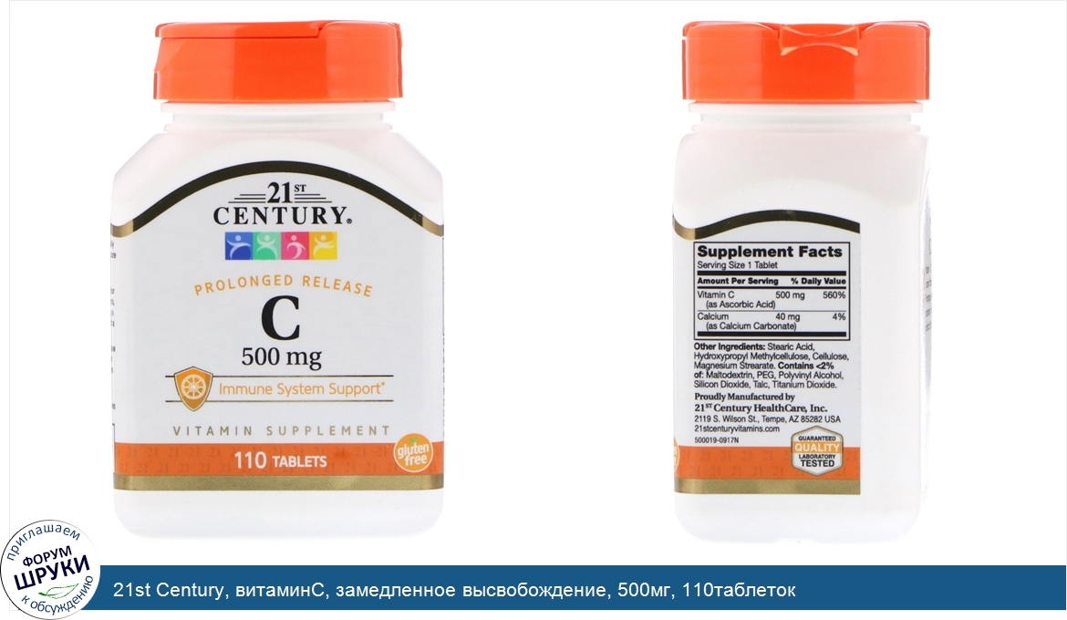 21st Century, витаминC, замедленное высвобождение, 500мг, 110таблеток