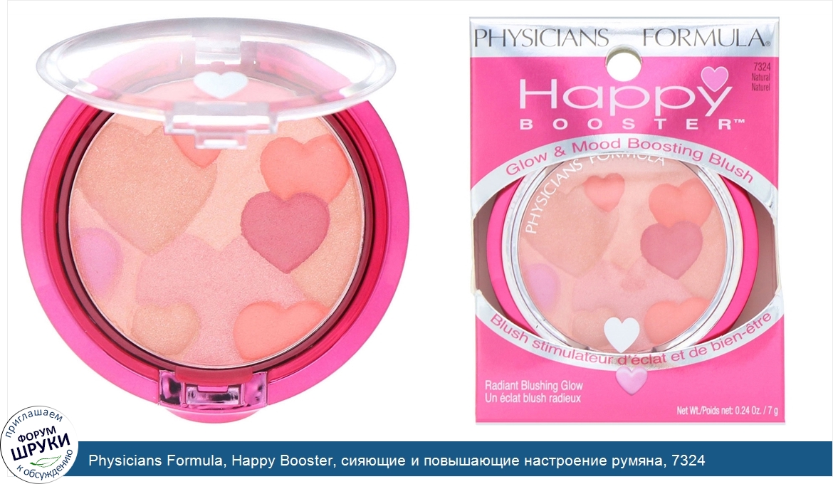 Physicians Formula, Happy Booster, сияющие и повышающие настроение румяна, 7324 натуральный тон, 0.24 унций (7 г)