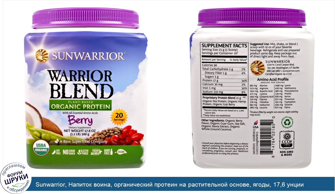 Друзья, если у вас есть отзыв/дополнение/комментарий/вопрос относительно Sunwarrior, Напиток воина, органический протеин на растительной основе, ягоды, 17,6 унции (500 г) - напишите его ответом в эту тему (это будет полезно всему сообществу в целом и вам в отдельности).