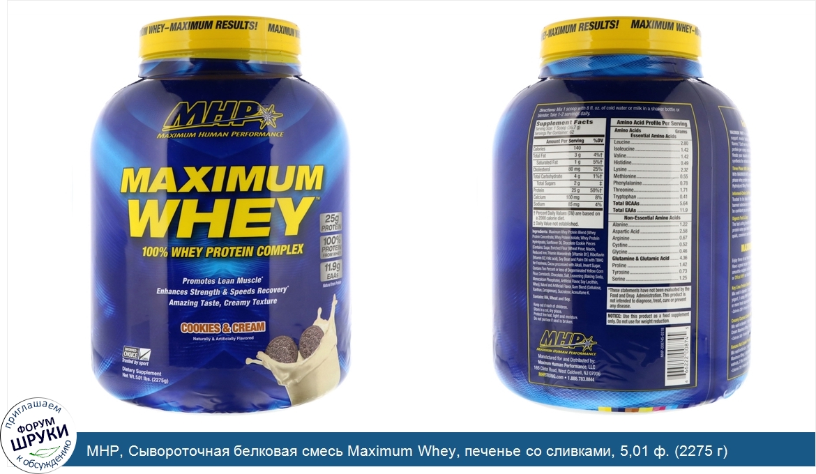 Друзья, если у вас есть отзыв/дополнение/комментарий/вопрос относительно MHP, Сывороточная белковая смесь Maximum Whey, печенье со сливками, 5,01 ф. (2275 г) - напишите его ответом в эту тему (это будет полезно всему сообществу в целом и вам в отдельности).