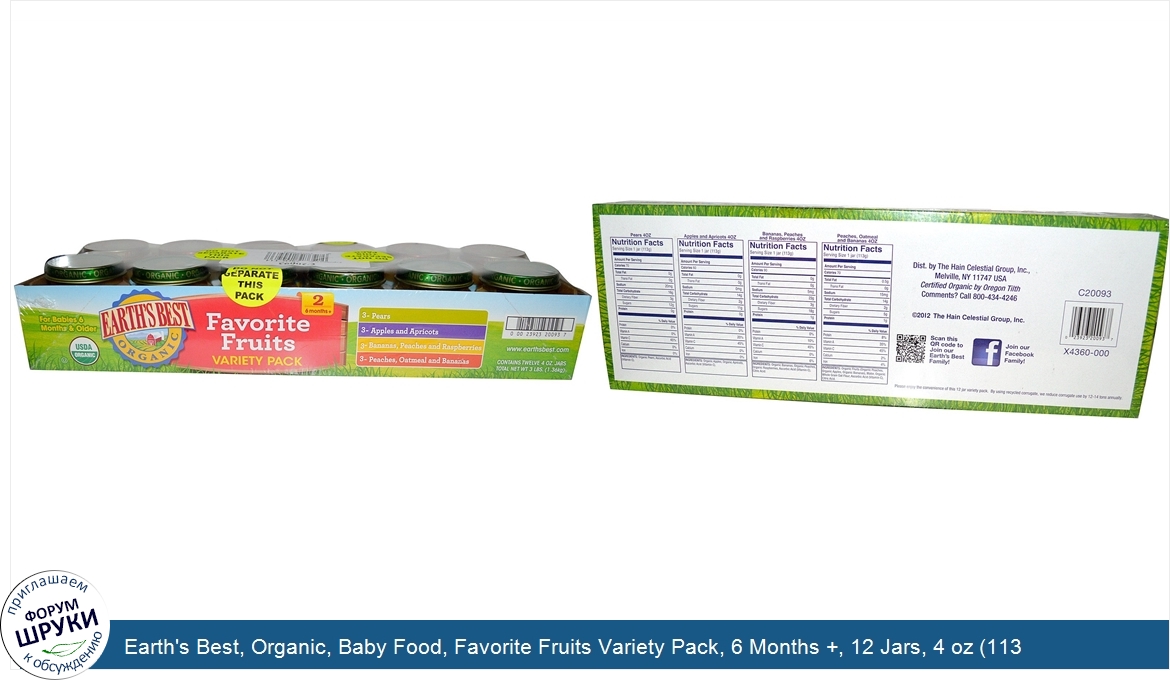Друзья, если у вас есть отзыв/дополнение/комментарий/вопрос относительно Earth's Best, Organic, Baby Food, Favorite Fruits Variety Pack, 6 Months +, 12 Jars, 4 oz (113 g) Each - напишите его ответом в эту тему (это будет полезно всему сообществу в целом и вам в отдельности).