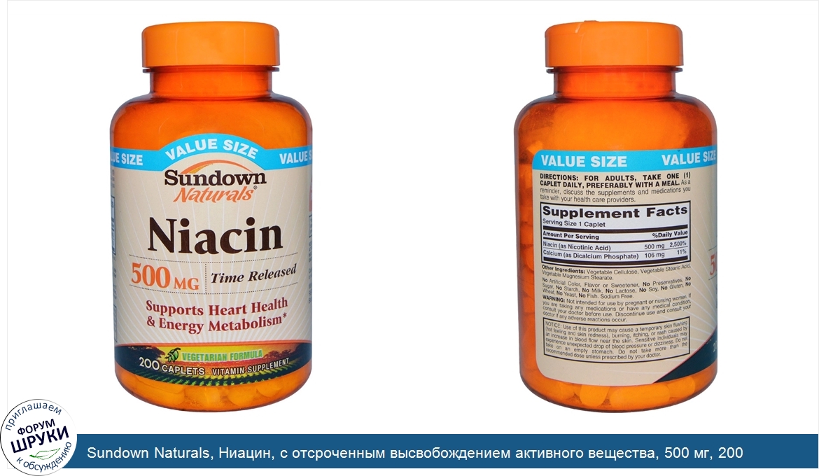 Друзья, если у вас есть отзыв/дополнение/комментарий/вопрос относительно Sundown Naturals, Ниацин, с отсроченным высвобождением активного вещества, 500 мг, 200 овальных таблеток - напишите его ответом в эту тему (это будет полезно всему сообществу в целом и вам в отдельности).