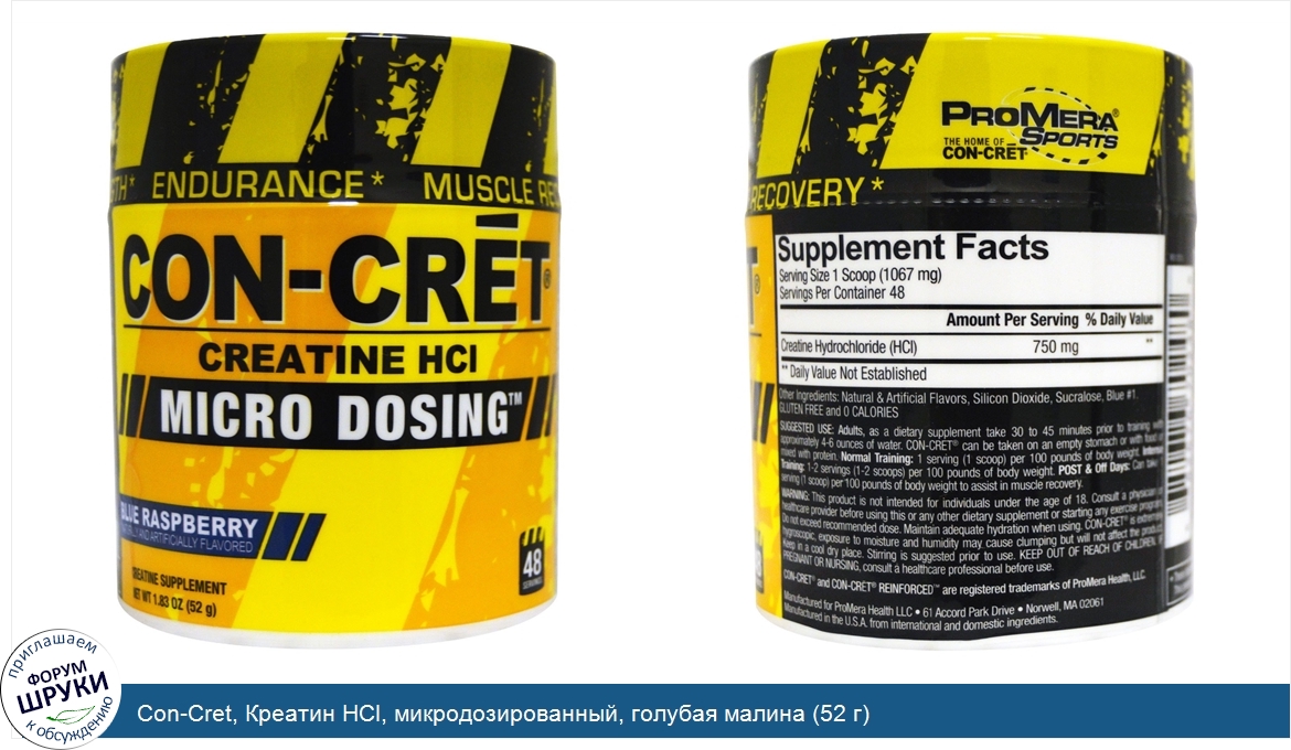 Con-Cret, Креатин HCl, микродозированный, голубая малина (52 г)