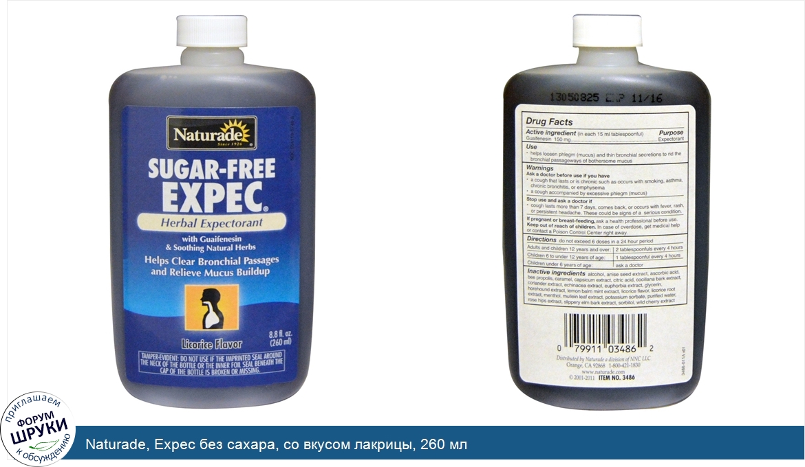 Naturade, Expec без сахара, со вкусом лакрицы, 260 мл