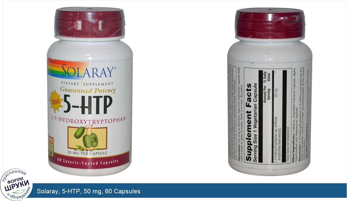 Друзья, если у вас есть отзыв/дополнение/комментарий/вопрос относительно Solaray, 5-HTP, 50 mg, 60 Capsules - напишите его ответом в эту тему (это будет полезно всему сообществу в целом и вам в отдельности).