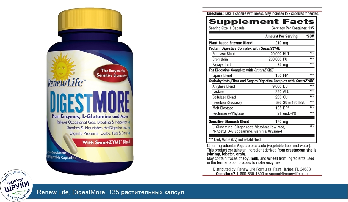 Друзья, если у вас есть отзыв/дополнение/комментарий/вопрос относительно Renew Life, DigestMore, 135 растительных капсул - напишите его ответом в эту тему (это будет полезно всему сообществу в целом и вам в отдельности).