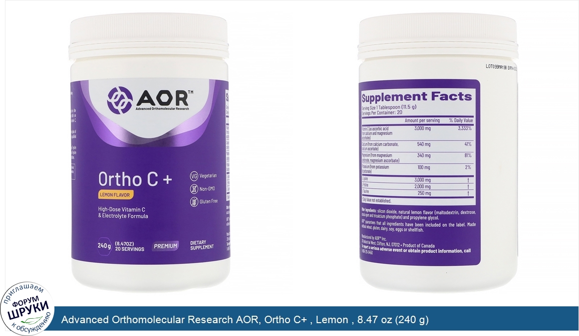 Друзья, если у вас есть отзыв/дополнение/комментарий/вопрос относительно Advanced Orthomolecular Research AOR, Ortho C+ , Lemon , 8.47 oz (240 g) - напишите его ответом в эту тему (это будет полезно всему сообществу в целом и вам в отдельности).