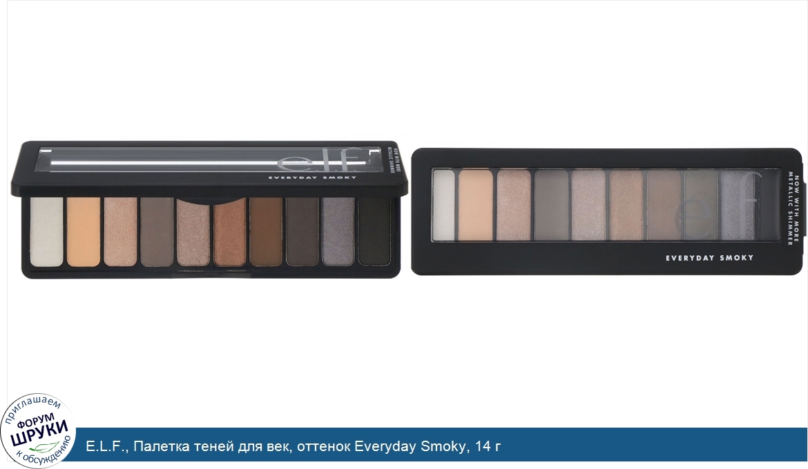 Друзья, если у вас есть отзыв/дополнение/комментарий/вопрос относительно E.L.F., Палетка теней для век, оттенок Everyday Smoky, 14 г - напишите его ответом в эту тему (это будет полезно всему сообществу в целом и вам в отдельности).